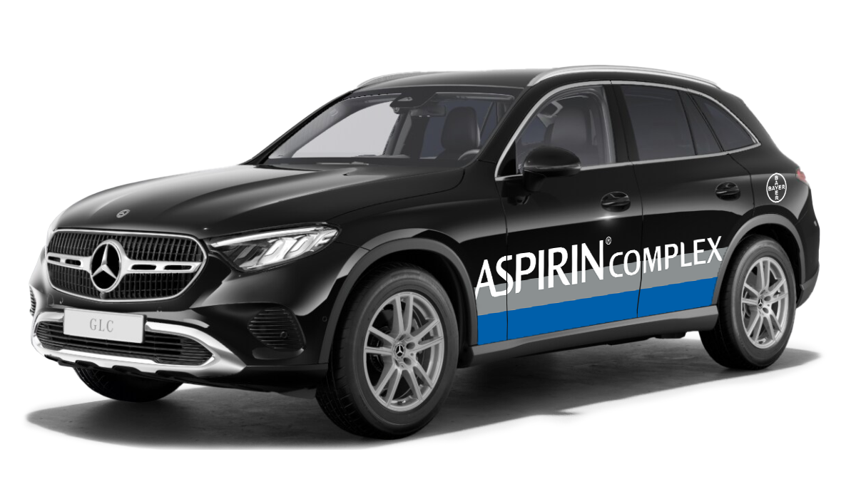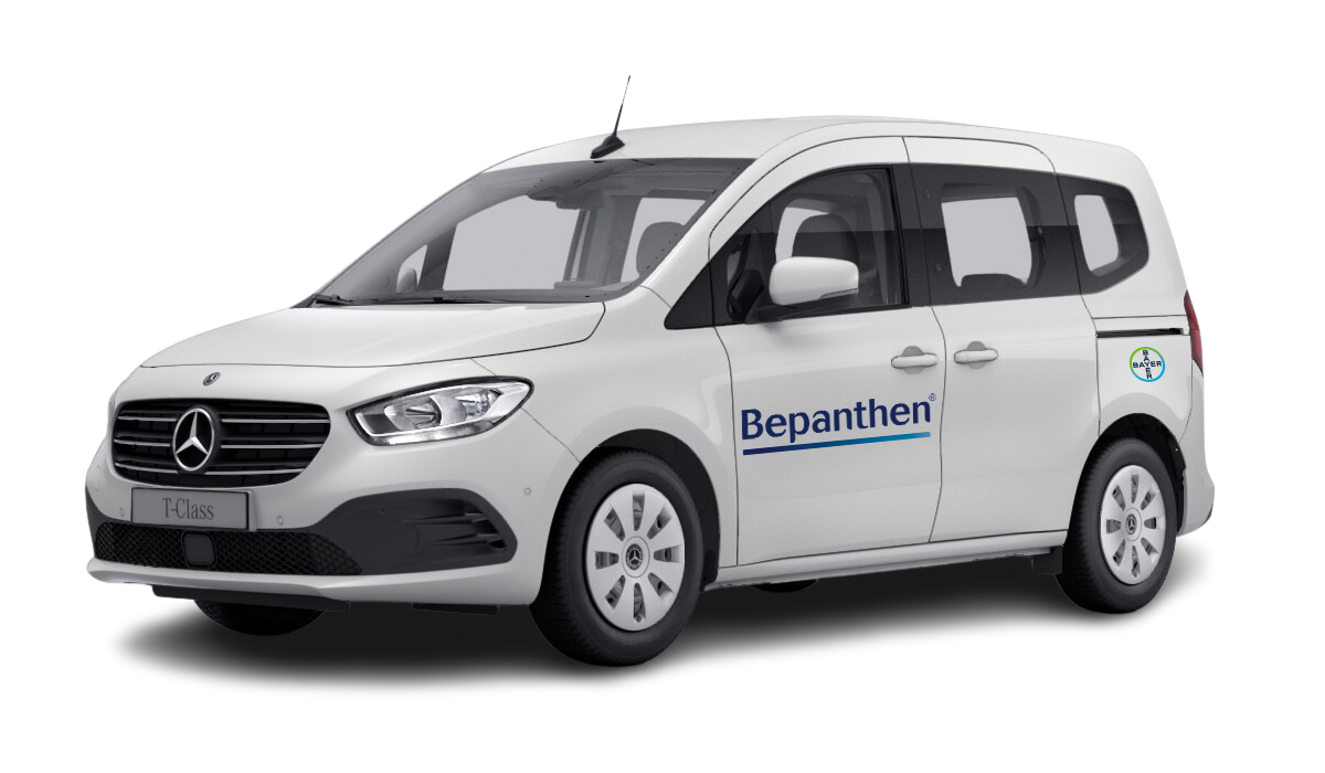 Die Fahrzeuge sind teils mit hochwertigem, dezentem Co-Branding von Bayer versehen – etwa in Form von Logos oder Gestaltungselementen, die die Verbindung zur Gesundheitsbranche unterstreichen. So stärken Sie Ihre Sichtbarkeit als moderne Apotheke und profitieren zusätzlich von attraktiven Konditionen.